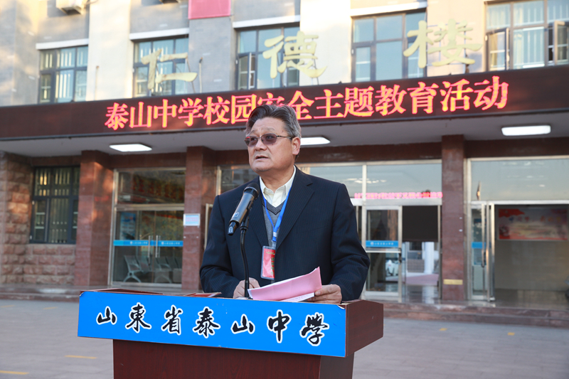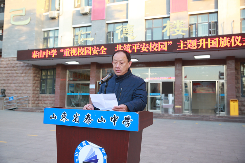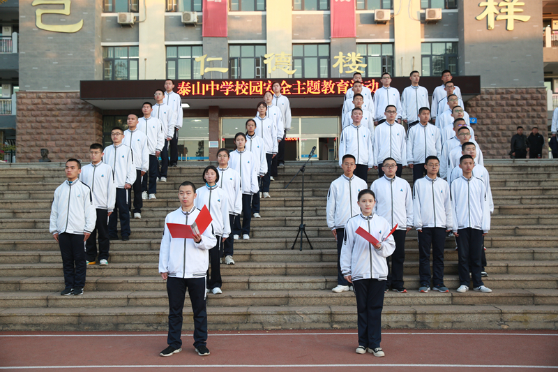校园安全直接关系到社会稳定、师生安全、学生成长和教育的发展。为强化师生安全意识,筑牢平安校园防线, 11月9日,泰山中学举行了“重视校园安全· 共筑平安校园”主题升国旗仪式。