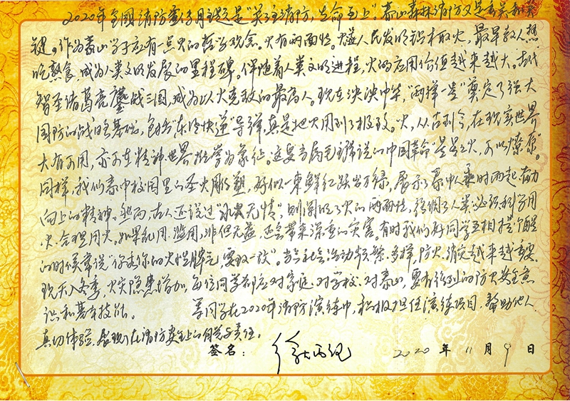 校长、党委书记徐炳伦总结了上周三项重大活动:一是张艳华、郎贤萍、孙华平、刘晓红、高琪老师荣获泰安市教育科学十三五规划2020年度立项课题证书,扛起了以教科研引领课堂教学的大旗;二是韩磊、米晶、付兰景、王文艺、龚立民、孙传宝、刘凯、张科涛、张帅老师参加学校主题班会比赛,展示出班主任的综合素质,切实提高学生的思想道德意识;三是学校精心组织了校园安全演练,演练环节齐全、安全有序,达到了预期效果。高一十班高付琳、王亚如、贾仪琳、徐嘉玺四位同学在警报拉响、危险来临的紧急关头主动搀扶帮助本班行动不便的两位同学宗欣然,韩天琦迅速逃生,表现出乐于助人,团结友爱的品质。徐校长为六名同学亲自颁发了“泰山中学‘泰山学子’成长进步攀登卡”,并宣读了亲笔题写的颁奖词,倡议全体同学对家庭、对学校、对泰山要有强烈的防火安全意识和基本技能。