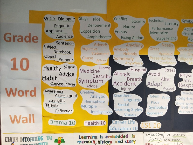 作为中加班词汇学习的一部分,加方校长Josh整理了加方课程中的部分关键词汇制成了单词墙,让学生直观地看到他们课堂上使用的词汇,通过经常性地背诵帮助学生内化这些词汇。