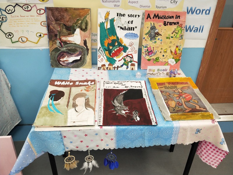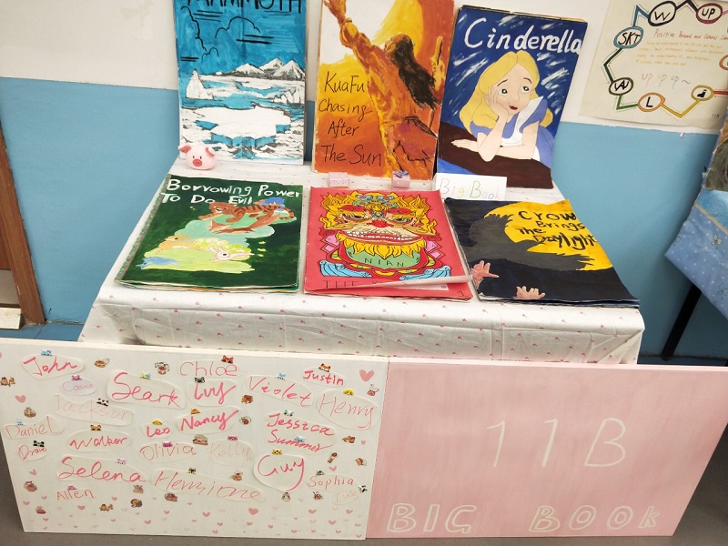 巨型书是建立口头语言和书面形式之间联系的神奇的辅助工具。中、加两国的传统文学包括民间故事、传说、神话、寓言、童话等民间故事是叙事的主体。学习口语课程的学生在概念化、绘画和制作书籍方面展示他们的创造力,这些书有大的图片和文字作为生动故事的道具。高二年级的学生把讲故事作为一种有趣的经历,并在学校报告厅完成了表演。