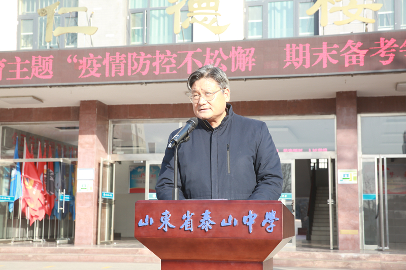 在当前疫情防控形势下,结合期末考试即将来临的实际情况,泰山中学举行了“疫情防控不松懈 期末备考争分秒”主题升国旗仪式。