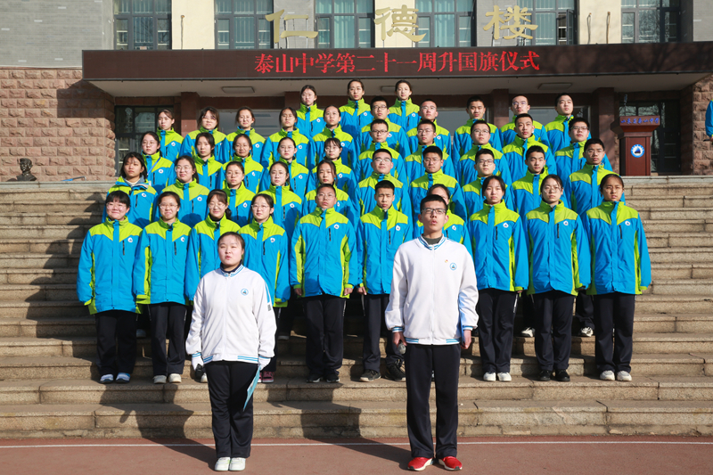 升国旗仪式中,还对近日在校园中涌现出的先进事迹和个人予以通报表扬,为部分学生代表颁发了“泰山中学泰山学子综合素质攀登卡”。