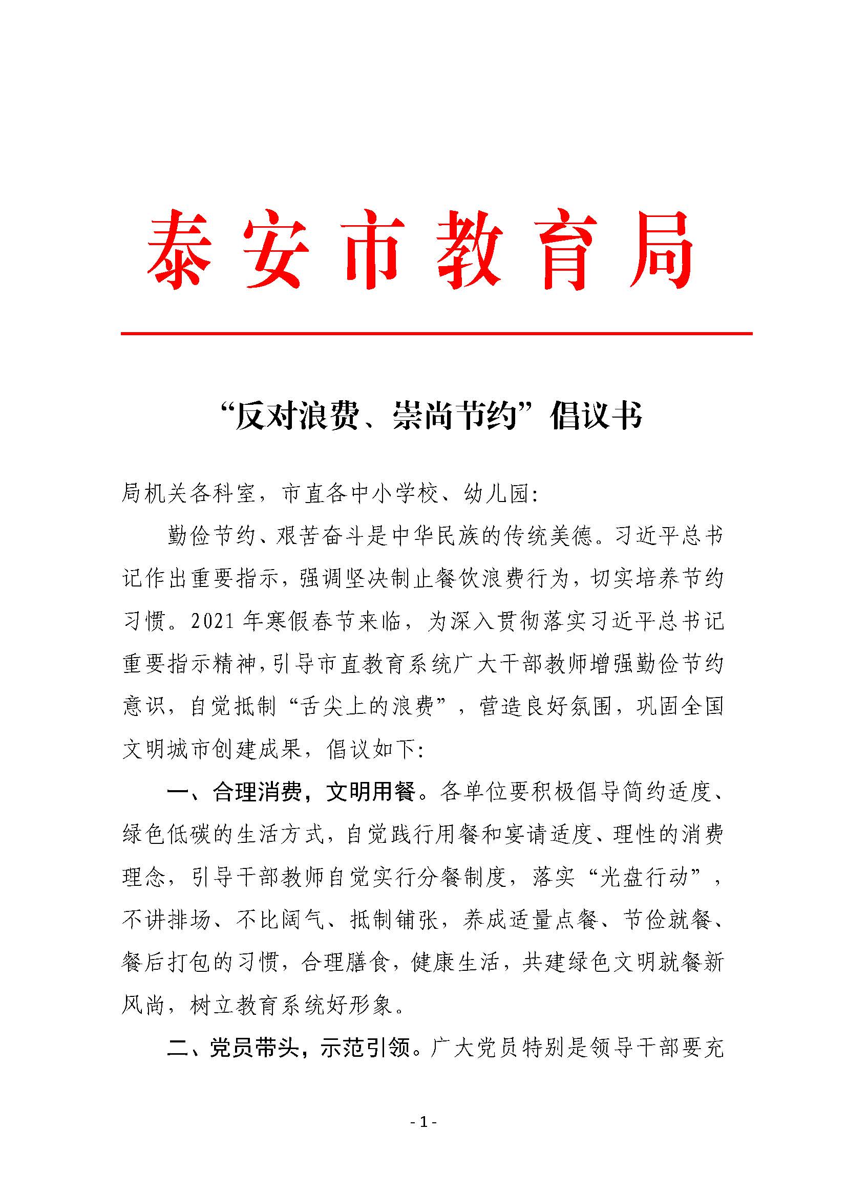 “反对浪费、崇尚节约”倡议书
