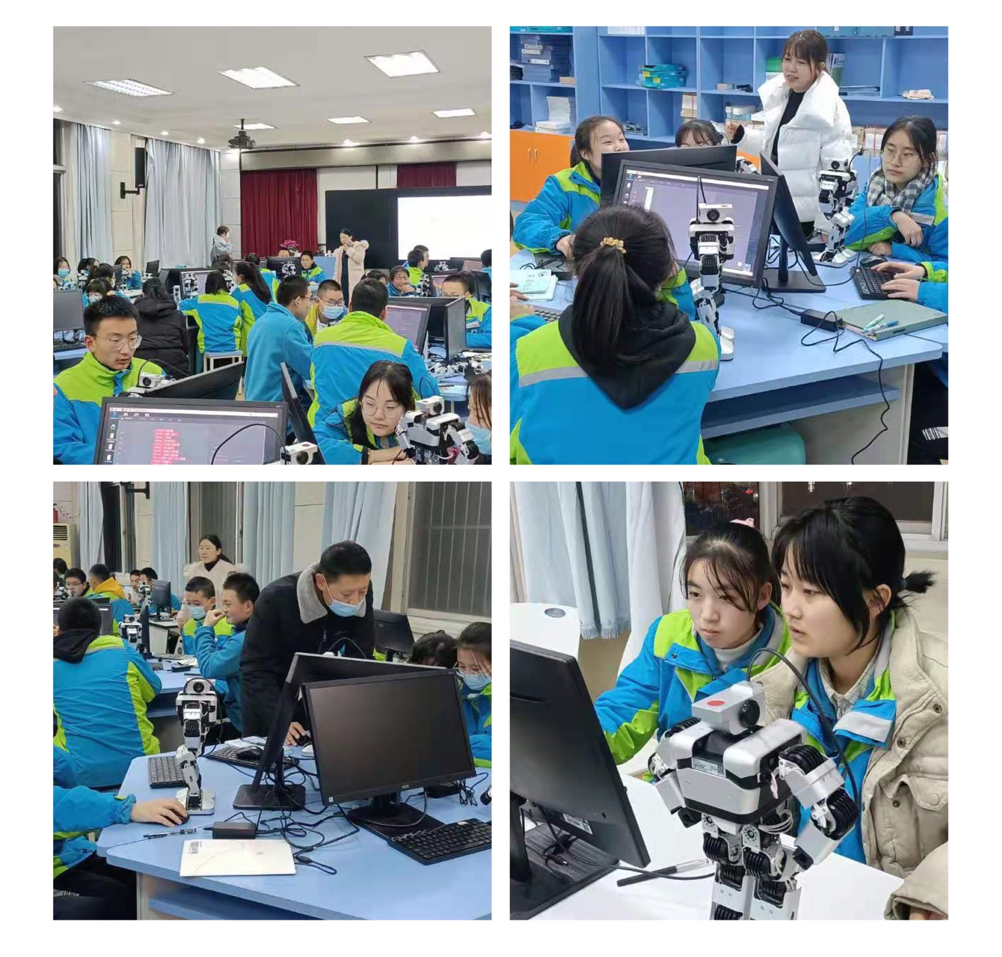 其中,理论课是利用信息技术课来完成,实践课在立心楼的人工智能实验室开展。实践共分为三个部分,分别是偃师机器人理论的学习、Blokly编程软件的认识,偃师机器人编程。在活动中,同学们学习专注,学习兴趣浓厚,通过老师讲解、小组合作、同伴互助等方式圆满完成了各项任务。在活动中,涌现了一些动手能力特别强、编程思维强的一些同学,对编程学习得心应手。