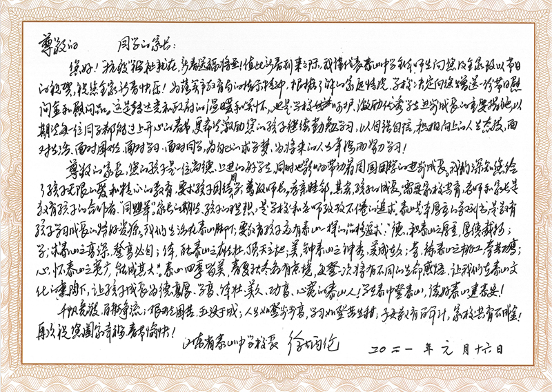 2021年是继往开来的一年,泰山中学将以本次走访慰问活动为起点,从学生需要的温暖的地方做起,从点滴做起,打造如山校风、如水的学风、如春的教风。