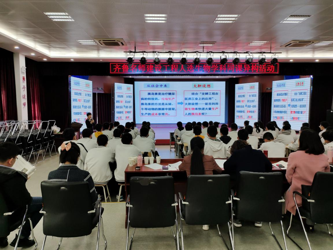 2021年3月25日,第四期齐鲁名师建设工程(理化生组)集中培训同课异构活动在我校举行。此次活动,我校承担物理、化学、生物三科的会场任务,来自全省各地的九位老师,分别围绕《分子动理论的基本内容》《认识晶体》《重组DNA技术的基本工具》三个课题设计教学,同课异构。