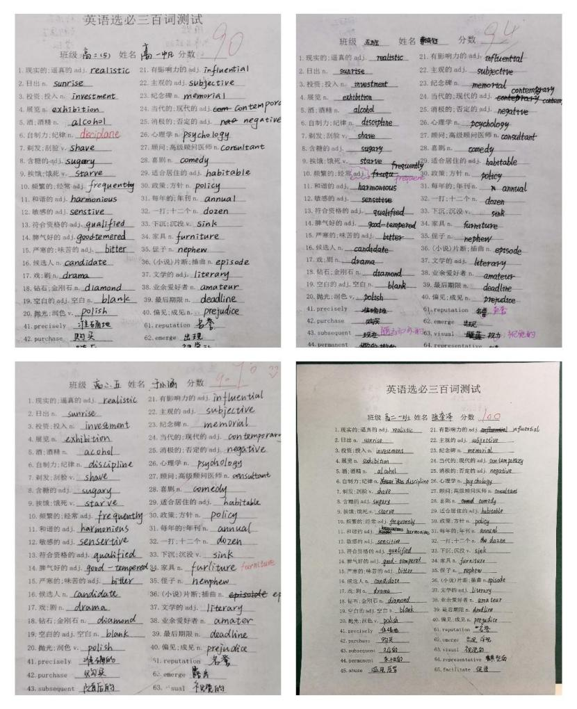 四月的校园春意盎然,一片万物复苏、生机勃勃的景象,桃李春风轻拂面,正是少年读书时。为了提高我校学生的外语综合应用能力,激发其外语学习兴趣,夯实学生的英语基础,全面营造良好的外语学习氛围,为高考一轮复习夯实基础,同时丰富校园文化生活,进而调动学生学习英语的积极性和主动性,在英语备课组的精心准备及各班班主任的积极支持和配合下,2021年4月21日泰山中学高二年级英语组举办了主题为“Compete For Word King,Improve English Learning ”英语单词百词竞赛活动。