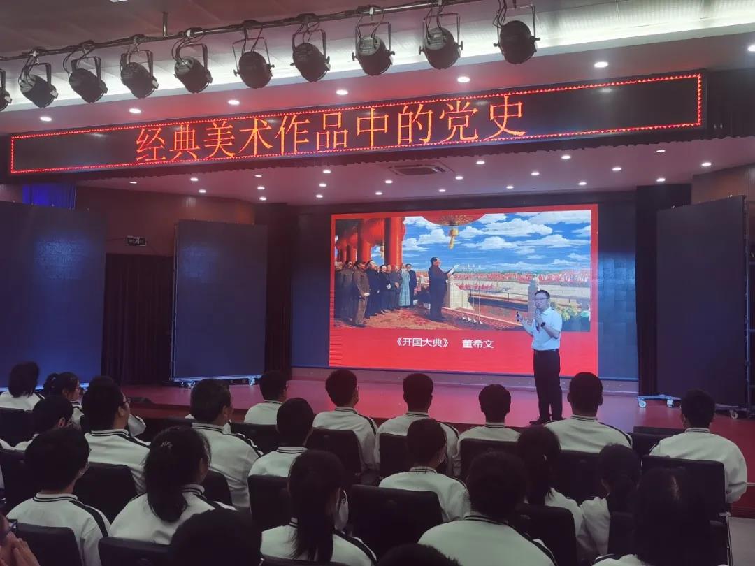 为传承红色基因,厚植爱党情怀,向中国共产党建党100周年献礼,山东省泰山中学以“学党史·感恩党·跟党走”为主题,开展了一系列活动。近日,学校开设红色讲堂,组织高二年级300余名师生举办了《经典美术作品中的党史》专题宣讲活动。