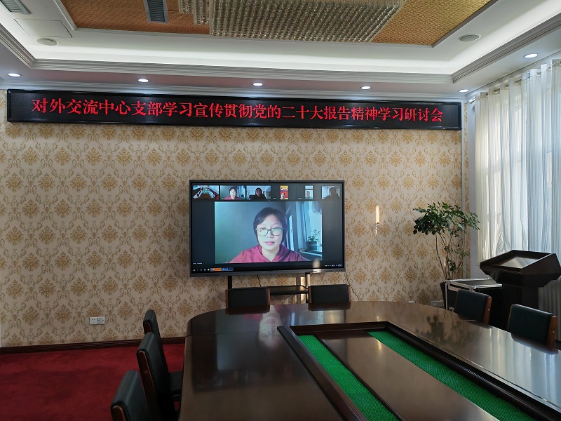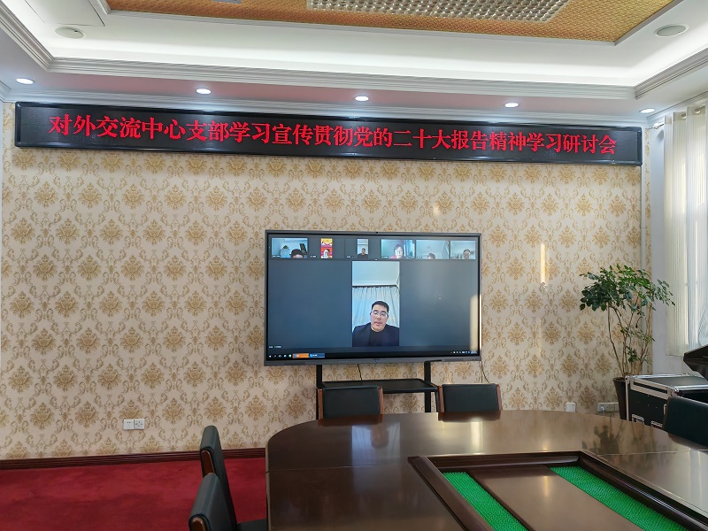 对外交流中心支部书记孔庆国指出深入学习贯彻党的二十大精神是当前和今后一个时期学校的重要政治任务,要全面把握党的二十大精神实质,准确把握学什么和怎么学。对外交流中心已迈入第二个十年,虽然受到国际形势的冲击,但是在党的二十大精神指导下,百折不挠、务实创新,凝心聚力做好教育教学,相信会谱写出对外交流中心高质量发展的新篇章。