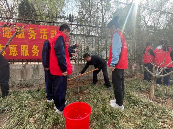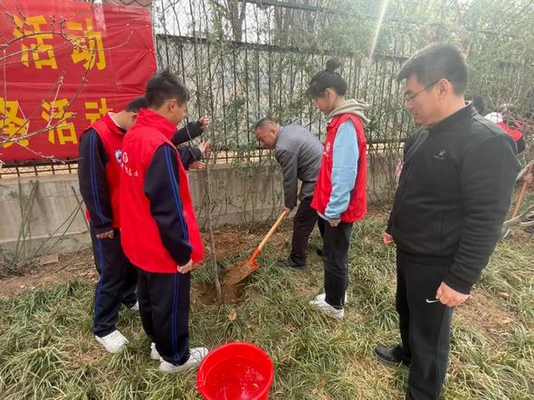 为迎接植树节,两校师生一起挥锹铲土、扶苗踩实、堆起围堰,栽下一棵棵树苗,种下一份份希望。