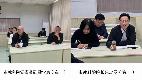 教科院院长吕忠堂、副院长朱增兴等领导现场聆听政治组的集体备课。