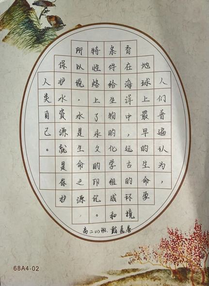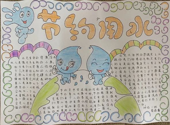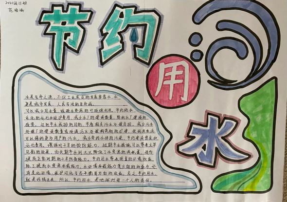 全体同学以“节水中国,你我同行”为主题,围绕节约用水标语、节约用水小窍门、节水型社会畅想、节水绿色生活构建等方面进行书画创作。