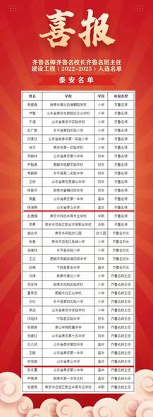 泰山中学2位教师入选齐鲁名师、齐鲁名班主任建设工程