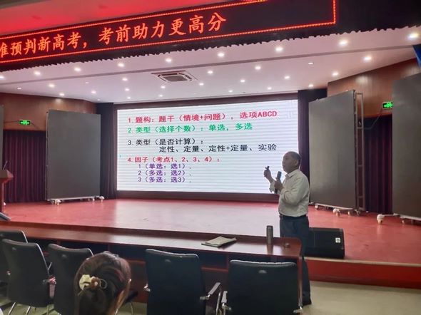 吴强主任以《精准预判新高考,考前助力更高分》为题,系统分析了近三年来各地高考选择题、实验题的命题特点和规律,对于力学实验和电学实验分别进行了分析和预测,强调物理学科实验的重要性,并勉励同学们将来能在物理学科方面有所建树。吴主任结合学生实际和答题情况,重点分析了同学们在计算题中存在的问题,就如何审题、怎样规范有效答题,进行了针对性的指导。