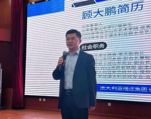 5月21下午,泰山中学校友澳大利亚瑞达集团总经理顾大鹏为学弟学妹们做励志报告。