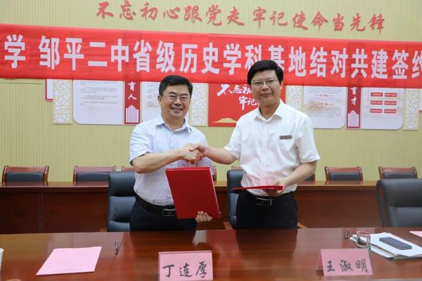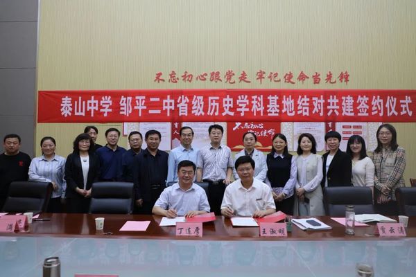 随后,泰山中学丁校长和邹平二中王校长在合作协议上共同签字,两校正式成为省级历史学科基地结对共建单位。