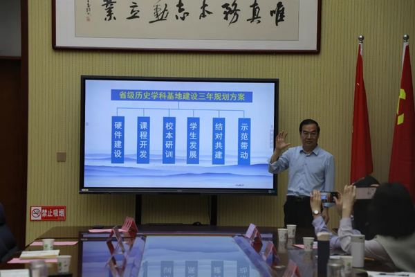 我校领导和教师认真听取了邹平二中首席教师刘庆亮关于学科基地建设的情况,刘主任从六大方面详细介绍了历史学科未来的三年发展规划,已经取得的阶段性成绩以及接下来工作的重点,对于基地建设的创新举措、积极尝试以及取得的骄人成绩,泰山中学一行表示极大的赞许,尤其是独树一帜的考古社及其展览室,老师们表现出了极大的关注和热情。