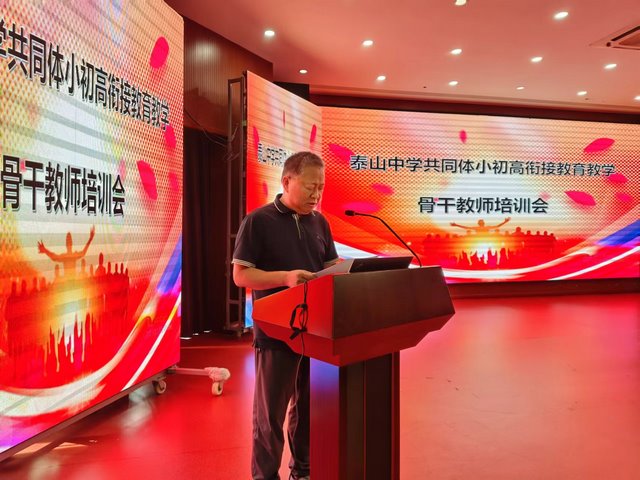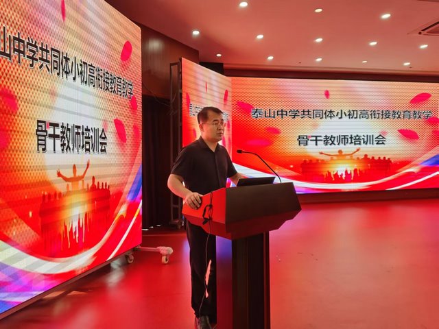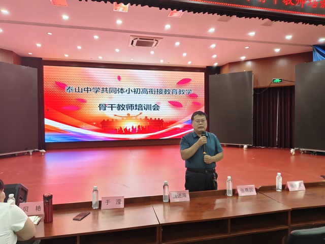 为全面贯彻党的教育方针,落实立德树人根本任务,推动小初高衔接教育教学深入实施,根据《泰安市教育科学研究院关于继续开展全市第一批小初高衔接教育教学“研究型”骨干教师人选封闭式培训的通知》文件要求,7月3日,泰山中学开展小初高衔接教育教学共同体骨干教师培训研讨活动。