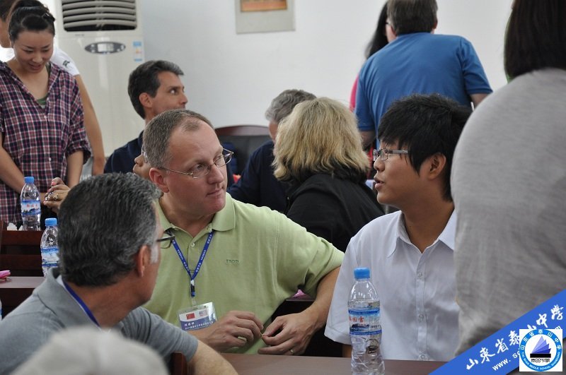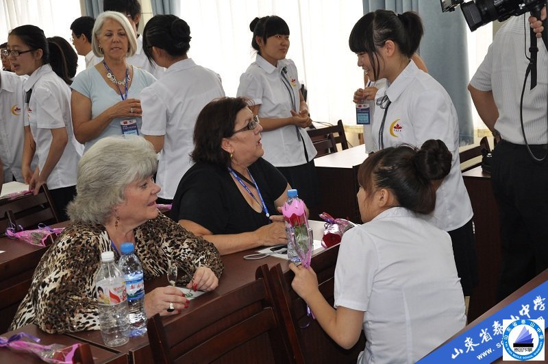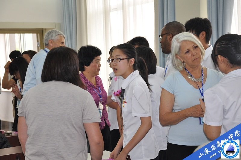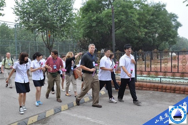 2011年6月24日上午, 由国家汉办组织的“汉语桥”——美国中小学校长访问团一行45人来泰安市进行参观访问。学校在会议室举行了简短的欢迎仪式,泰山中学校长周军发表了热情洋溢的欢迎辞。学校还向校长访问团代表赠送了学校师生自行制作的剪纸作品。美国校长访问团还对泰山中学中加班师生英语教学课进行现场观摩,并对学生流利的英语,活泼的课堂气氛做出了高度评价。我校还精心准备了一场富有民族特色的文艺演出,展现素质教育成果,美轮美奂的民族舞蹈,刚劲有力的中国武术,清新悠扬的笛子独奏,得到校长们的一致认可。该校长团代表大多数为首次访华,访问重点在于深入了解我国教育情况,体验中华文化,为开设和发展汉语教学项目积累合作经验。在对学校进行实地参观访问的基础上,山东省泰山中学与罗斯福高中、克利夫兰高地高中两所学校达成合作意向,今后将在英语和汉语教学交流、教学人员和学生间的互访交流、建立姊妹学校等方面加强交流与合作。